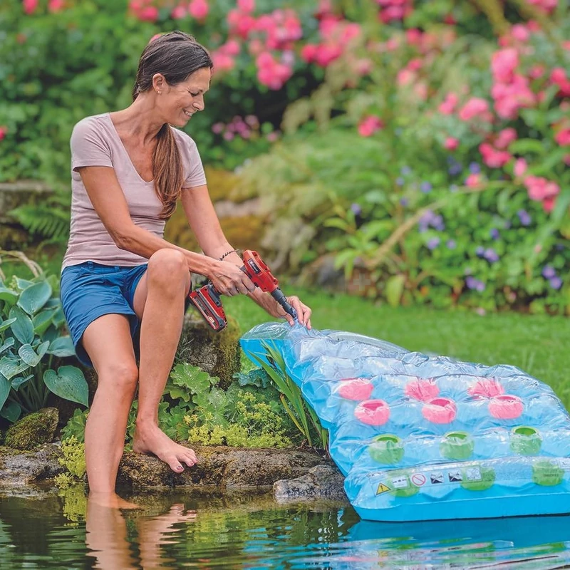 Az akkumulátoros autós kompresszorból és akkumulátoros pumpából álló szett két olyan készüléket tartalmaz, amelyek nélkülözhetetlen segítőtársai lesznek a mindennapokban. Mindkét termék a Power X-Change rendszercsalád tagja, ezért a sorozat valamennyi akkuját és töltőjét használhatja hozzájuk. Az Einhell CE-CC 18 Li-Solo akkumulátoros autós kompresszor egy rendkívül hasznos készülék, ha autók vagy kerékpárok gumiabroncsait, esetleg gumilabdákat szeretne felpumpálni. Az akkumulátoros autós kompresszor digitális kijelzőjéről mindig könnyedén és gyorsan leolvashatja az aktuális beállításokat. A kívánt nyomás – max. 11 bar értékig – egyszerűen beállítható. A nyomás elérésekor a kompresszor automatikusan kikapcsol. A mértékegységet (bar, psi vagy kPa) a megfelelő gomb többszöri megnyomásával állíthatja be. Manuális pumpálásra is van lehetőség, ilyenkor nem kell előzetesen beállítania a nyomást. A háromrészes adapterkészletet a kompresszoron található tartozéktartóban tárolhatja. Az ergonomikus kialakítású markolat kényelmes használatot biztosít. A gyári csomagolás tartalmaz egy szelepcsatlakozóval ellátott, 60 cm hosszúságú nyomótömlőt is, amely rendkívül rugalmas munkavégzést tesz lehetővé. Az Einhell CE-AP 18 Li akkumulátoros pumpa gumicsónakok, -matracok, illetve labdák és hasonló játékok felfújására, valamint – univerzális fúvóként – munkafelületek tisztítására használható. A két szelepátalakító adapter sokoldalú felhasználási lehetőséget biztosít. Teljesítmény: 670 liter/perc, max. 0,05 bar nyomáson. A rögzíthető kapcsoló kényelmes munkavégzést garantál. A LED-világítás optimális megvilágítást biztosít még akkor is, ha nincs elegendő fény a munka elvégzéséhez. Az ergonomikus fogantyú megkönnyíti a készülék használatát. 1x 2,0 Ah akkuval és töltővel.