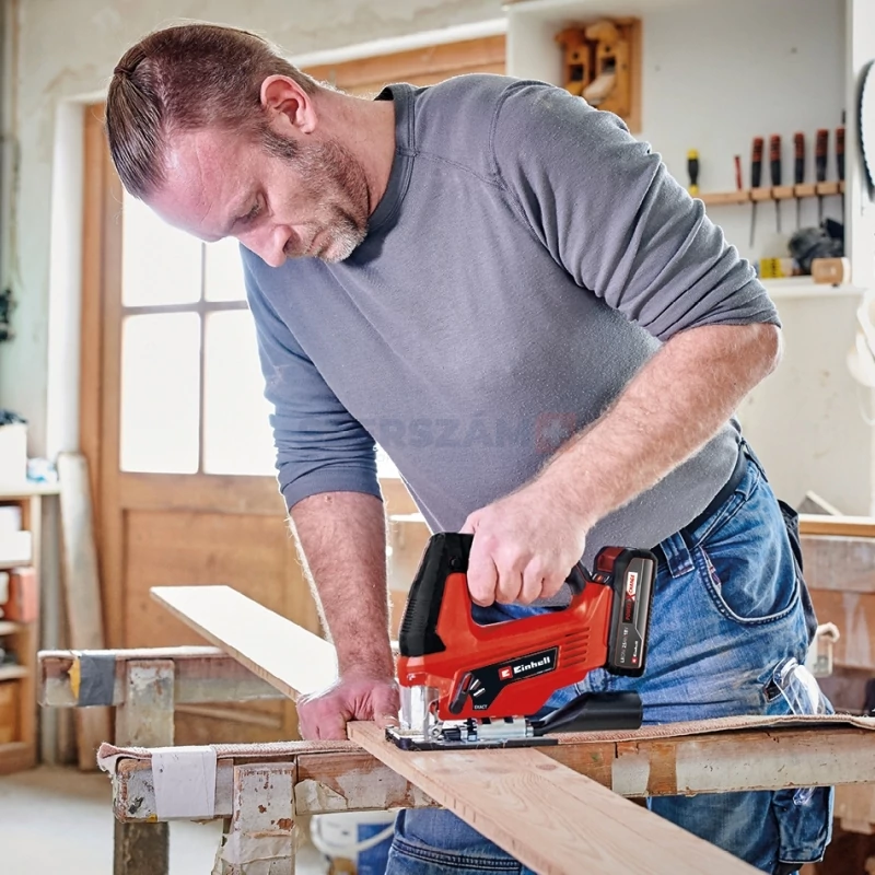 Az Einhell TC-JS 18 Li akkumulátoros dekopírfűrész egy rendkívül sokoldalú készülék, amellyel mindig gyorsan és pontosan dolgozhat. Mivel nem kell a hosszabbítókkal bajlódnia, ezért tökéletes megoldást jelent az otthonában, a műhelyben és a garázsban egyaránt. Az egyenletes működés pontos, precíz munkavégzést tesz lehetővé. Gyorsabb vágásokhoz használja a lengő előtolást. Az univerzális befogónak köszönhetően nem lesz szüksége szerszámokra a fűrészlapok cseréjéhez. A vágás vonalának tisztán tartásáról a fúvófunkció gondoskodik. A beépített műanyag csúszóelem óvja a sérülékeny munkadarabokat.