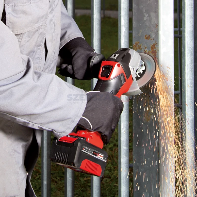 A csiszolásra, vágásra és polírozásra tervezett Einhell TC-AG 18/115 Li akkumulátoros sarokcsiszoló kategóriájának legkönnyebb készüléke. A biztonságról a Softstart (lágyindítás) funkció és újraindulás elleni védelem, a hosszú élettartamról pedig a túlterhelés-védelem, az erős alumínium hajtóműház és a megváltoztatott légelvezetés gondoskodnak. Az egyenletes működést és a kényelmes munkavégzést a motor és a hajtómű szétválasztása, valamint a Softgrip felülettel borított karcsú, ergonomikus készülékház biztosítja. A pótfogantyút három különböző pozícióban szerelheti fel a készülékre.