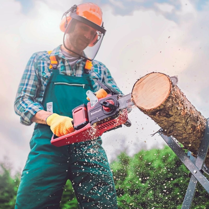 Az Einhell GE-LC 36/35 Li-Solo akkumulátoros láncfűrésze egészen biztosan leveszi a lábáról, hiszen egy rugalmas, erős és könnyen kezelhető segítőtársat ismer majd meg benne. A Power X-Change termékcsalád tagjaként a láncfűrész Einhell Brushless technológiával készült szénkefe nélküli elektromotorját két nagy teljesítményű 18 V akkumulátorról üzemeltetheti. Mivel a láncfűrészt nem kell közvetlenül az elektromos hálózatba csatlakoztatnia, ezért bárhol, bármikor használhatja. A 350 mm hosszúságú OREGON vágókarddal és fűrészlánccal felszerelt akkumulátoros láncfűrész 15 m/s vágási sebességéget garantál, melynek köszönhetően még a vastagabb fatörzsek elfűrészelése sem jelenthet neki akadályt. Sem a lánc cseréjéhez, sem a feszesség beállításához nem lesz szüksége szerszámra. A készüléket fémből készült robosztus körmös ütközővel szállítjuk. A maximális biztonságról a visszacsapódás-védelem, a láncfék és a láncfogó csapszegek gondoskodnak. A Softgrip felületű ergonomikus markolat még a hosszabb munkákat is egyszerűbbé, a makacs, nehezen elvágható anyagok fűrészelését pedig könnyebbé teszi. A fűrész használat közben automatikusan keni a láncot. Az olajat a nagyméretű olajbetöltő nyíláson keresztül öntheti a 120 ml űrtartalmú olajtartályba. A készüléket akkumulátor és töltőkészülék nélkül szállítjuk; ezeket külön - például praktikus PXC kezdőcsomag formájában - vásárolhatja meg.