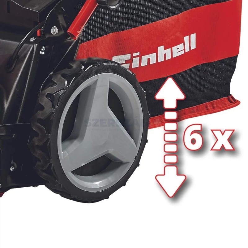 Az Einhell Vortex technológiával készült, strapabíró és rendkívül erős vágóterében forgó kés megkönnyíti a munkát, hiszen a speciális kialakításának köszönhetően a levágott fű azonnal a gyűjtőkosárba kerül. A kés így mindig szabadon foroghat, a kivetőcsatorna pedig tiszta marad. A tökéletes vágásképről és a megfelelő magasságról a hatfokozatú központi magasságállítás gondoskodik: a kívánt magasságot néhány mozdulattal beállíthatja.