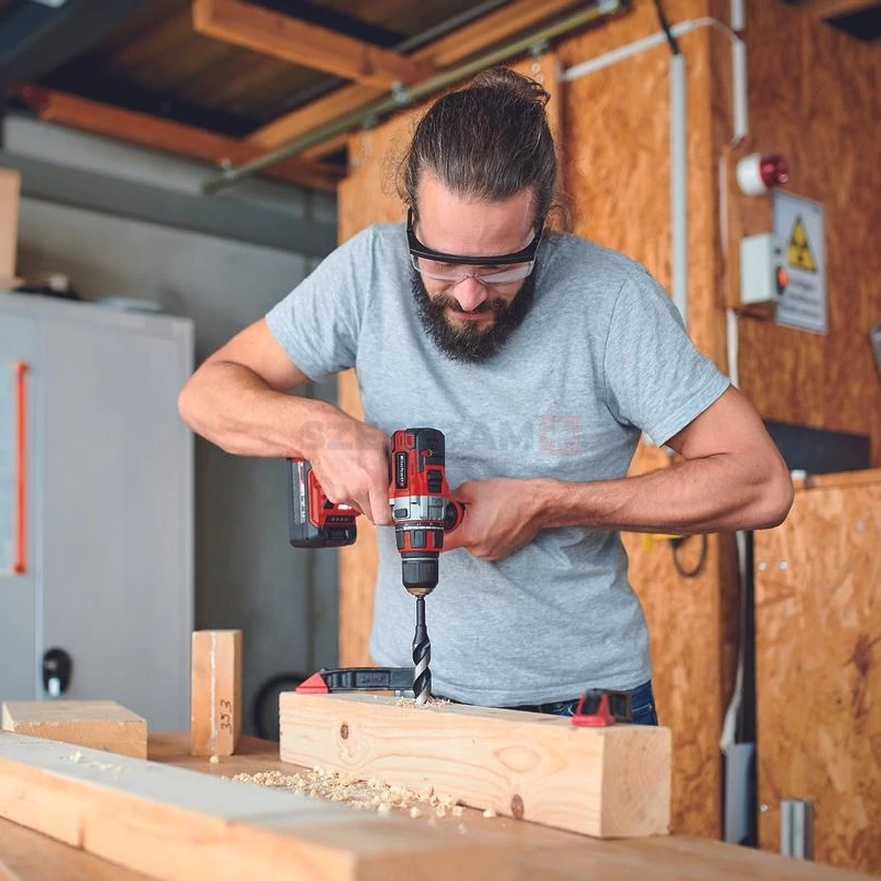 • Kétfokozatú hajtómű, amellyel a nehezebben behajtható csavarokat is könnyen behajthatja, és gyors fúrási munkákat is elvégezhet