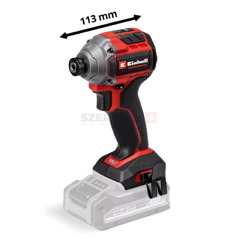 Az Einhell Professional TP-CI 18/250-C Li BL-Solo akkus ütvecsavarozó a Power X-Change termékcsaládunk egyik legerőteljesebb tagja. A Power X-Change termékcsalád tagjaként ez az akkus ütvecsavarozó a sorozat bármely akkumulátorával és töltőjével kombinálható. A szerszámot egy Einhell szénkefe nélküli motor hajtja. Ez a szénkefe nélküli motor nagyobb teljesítményt és hosszabb üzemidőt biztosít, mint a hagyományos szénkefés motorok. Az online regisztrációt követően a szénkefe nélküli motorra 10 év garancia vonatkozik. Kompakt, könnyű, mégis nagy teljesítményű: ez az akkus ütvecsavarozó körülbelül 30%-kal kompaktabb, mint a hasonló ütvecsavarozók. Ez teszi a lehető legrugalmasabbá és legkényelmesebbé a használatát. Erőteljes ütőmechanizmusának köszönhetően a nagy és hosszú csavarok becsavarása a legkönnyebb feladat ennek a csavarhúzóval. Ez a professzionális ütvecsavarozó ¼” (6,35 mm) belső hatlapos tokmánnyal rendelkezik, és maximális 250 Nm nyomatékot biztosít. A nyomaték és a sebesség három beállítással tökéletesen igazítható az adott anyaghoz. Ez különösen a puha és kényes anyagok kíméletes kezelését teszi lehetővé. A munkaterület optimális láthatósága érdekében a csavarhúzó beépített LED-es világítással rendelkezik. Annak érdekében, hogy munkavégzés közben mindkét keze gyorsan szabad legyen, övcsipeszzel ellátott, amelynek segítségével az akkus ütvecsavarozót könnyedén az övén tárolhatja. A szerszám nem tartalmaz akkumulátort vagy töltőt, ezek külön kaphatók.