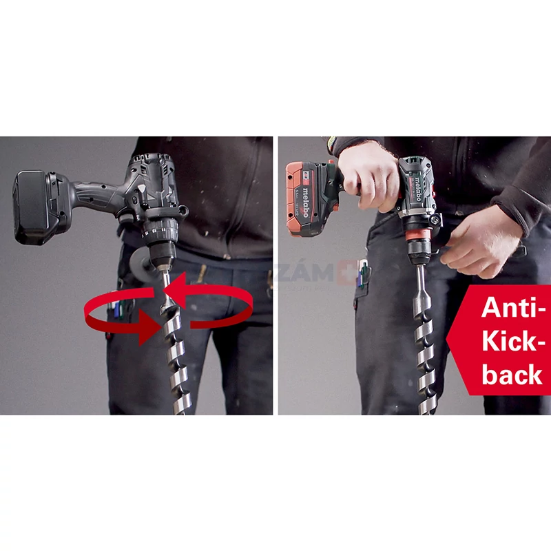 • Elektronikus biztonsági lekapcsolás: nincs visszacsapó hatás a fúró blokkolásakor – a nagy felhasználóvédelem érdekében