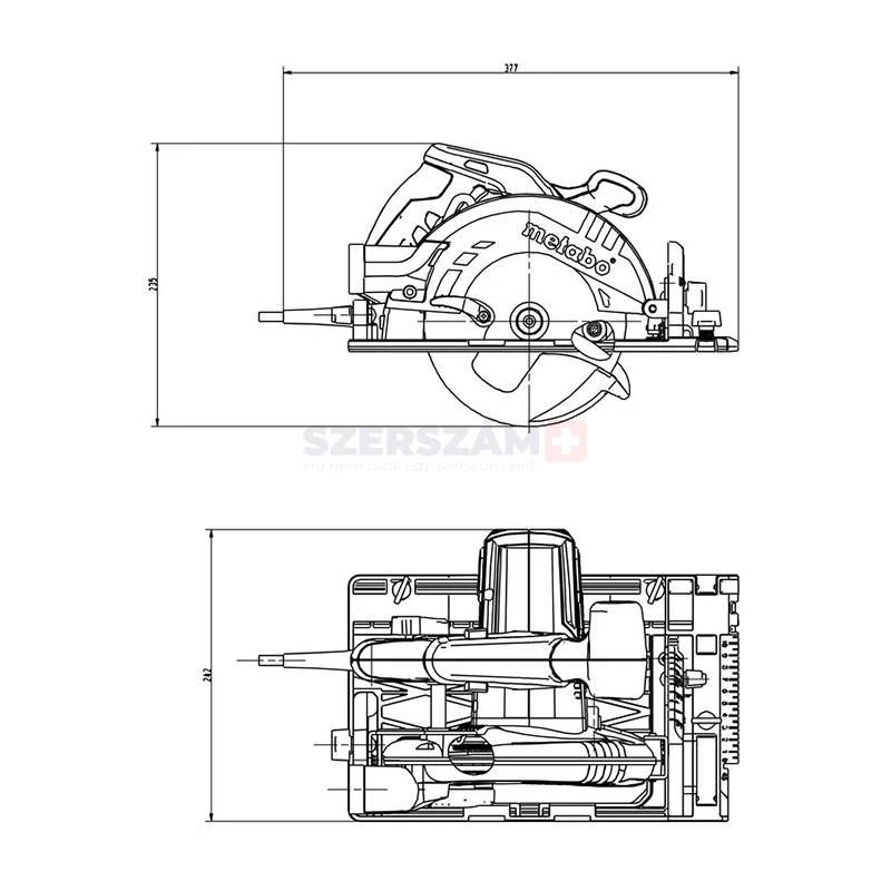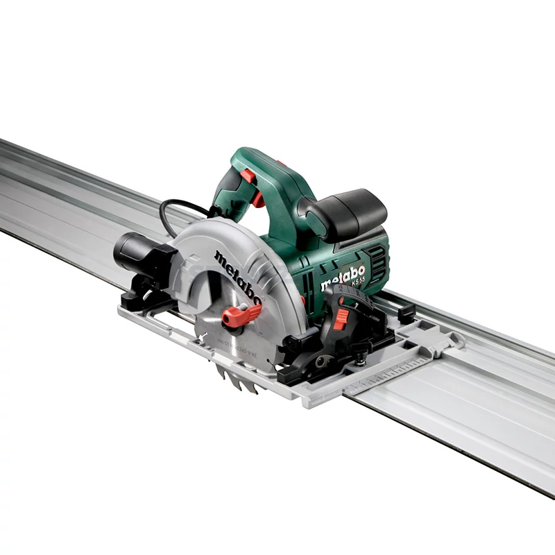 - Robusztus kézi körfűrész, közvetlenül a Metabo és egyéb gyártók vezetősíneire helyezve használható a pontos, hosszú vágásokhoz