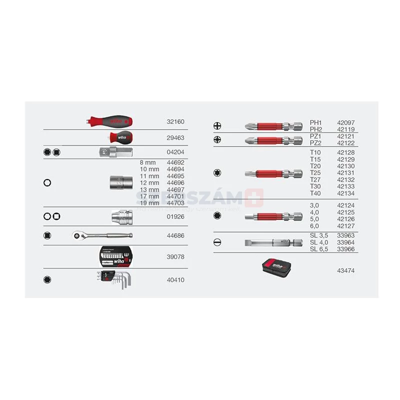 • Minden szerszám biztosan és rendezetten elhelyezve robusztus és áttekinthető táskában