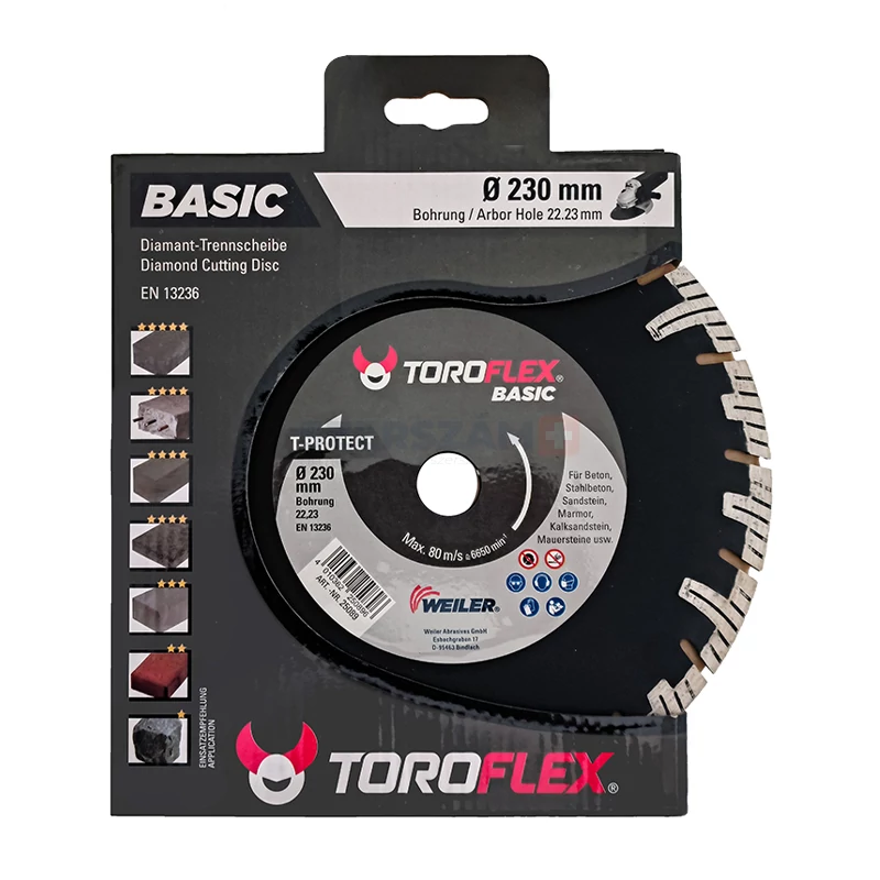 • T-PROTECT turbószegmentált tárcsa, amely tiszta, anyagkitörés mentes vágást biztosít a közvetlenül szinterezett vágóélnek köszönhetően
