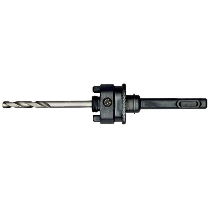 VIKING adapter SDS+ szárvéggel Ø32-250 mm átmérőjű körkivágóhoz rövid HSS központfúróval (MPD4S) érkezik, amely HSS Bi-metal körkivágókkal használható.