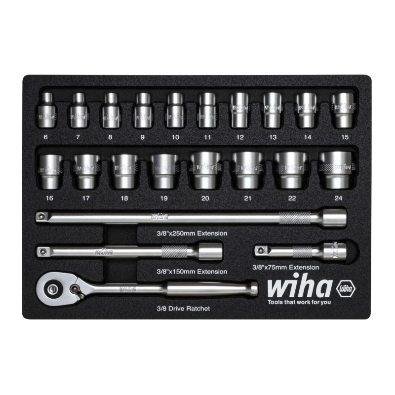 • 3/8" dugókulcsfej: 6; 7; 8; 9; 10; 11; 12; 13; 14; 15; 16; 17; 18; 19; 20; 21; 22; 24mm