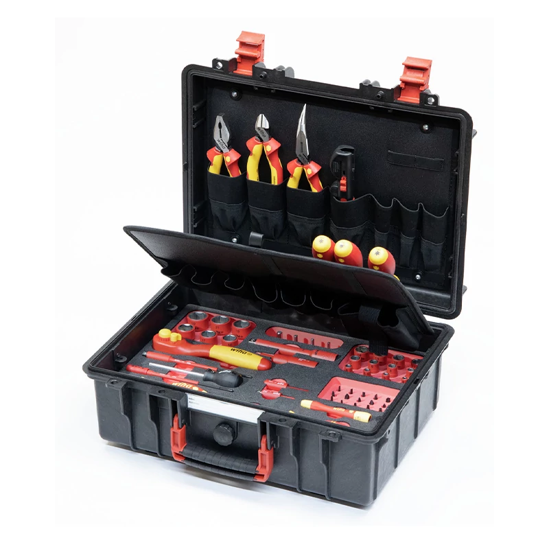 • Elektromos vagy hibrid járművek, töltőoszlopok, gyorstöltő állomások és elektromos ipari rendszereken végzett biztonságos munkavégzésekhez kiválogatott szerszámkínálat