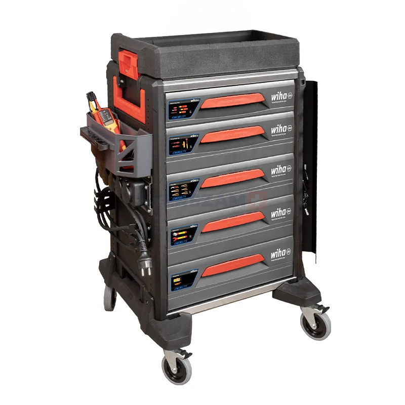 • A feszültségvizsgálóktól a nyomatékkulcsokig, a speciális szerszámoktól a figyelmeztető jelekig: a teljesen felszerelt műhelykocsival mindig kéznél van a megfelelő Wiha szerszám