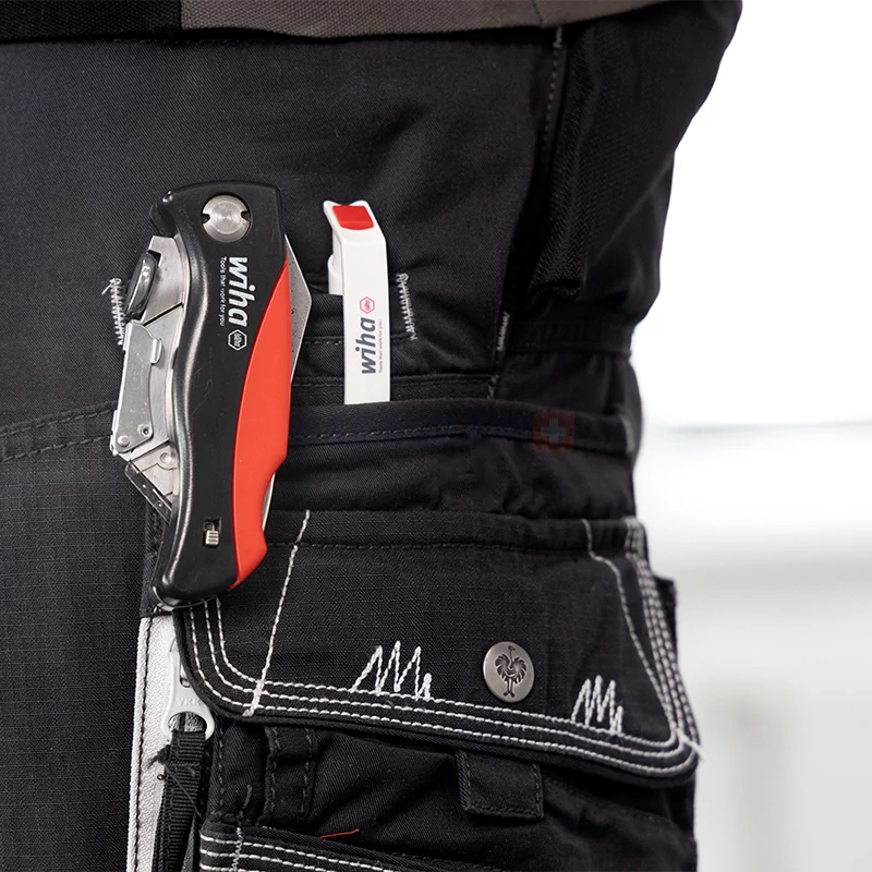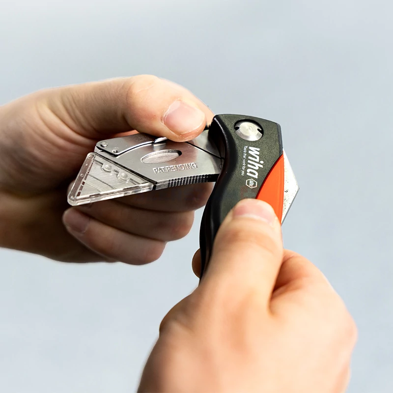 • A szerszámnélküli gyors pengecseréhez a tartalékpengék (5 db) biztonságosan a markolatból elérhetők