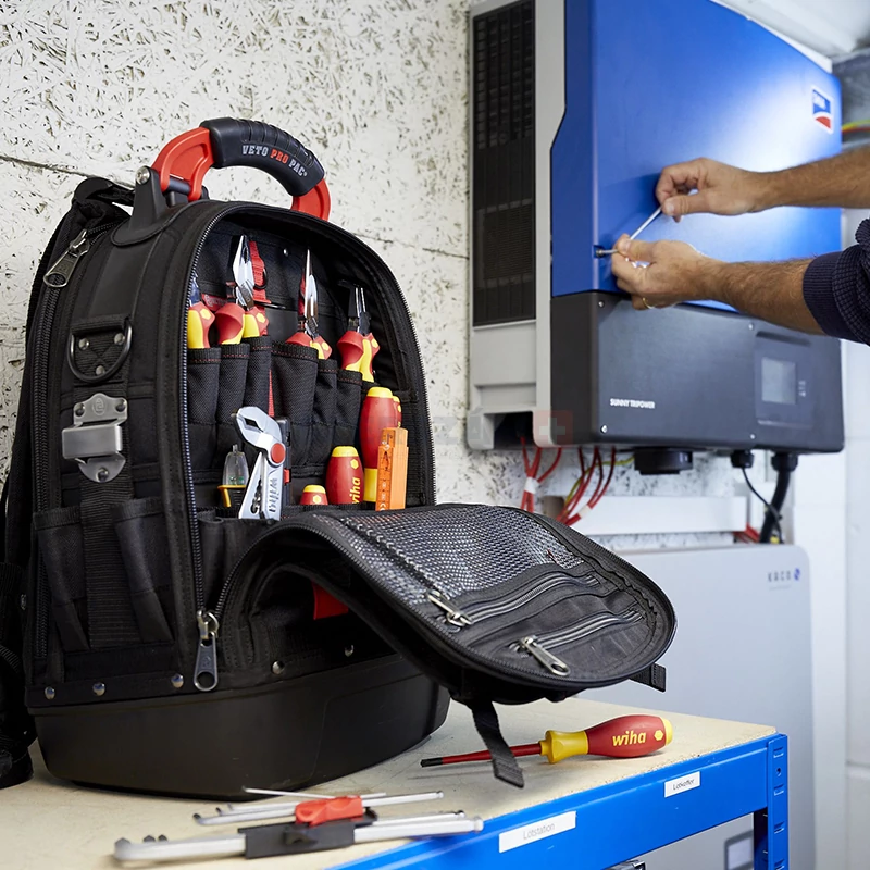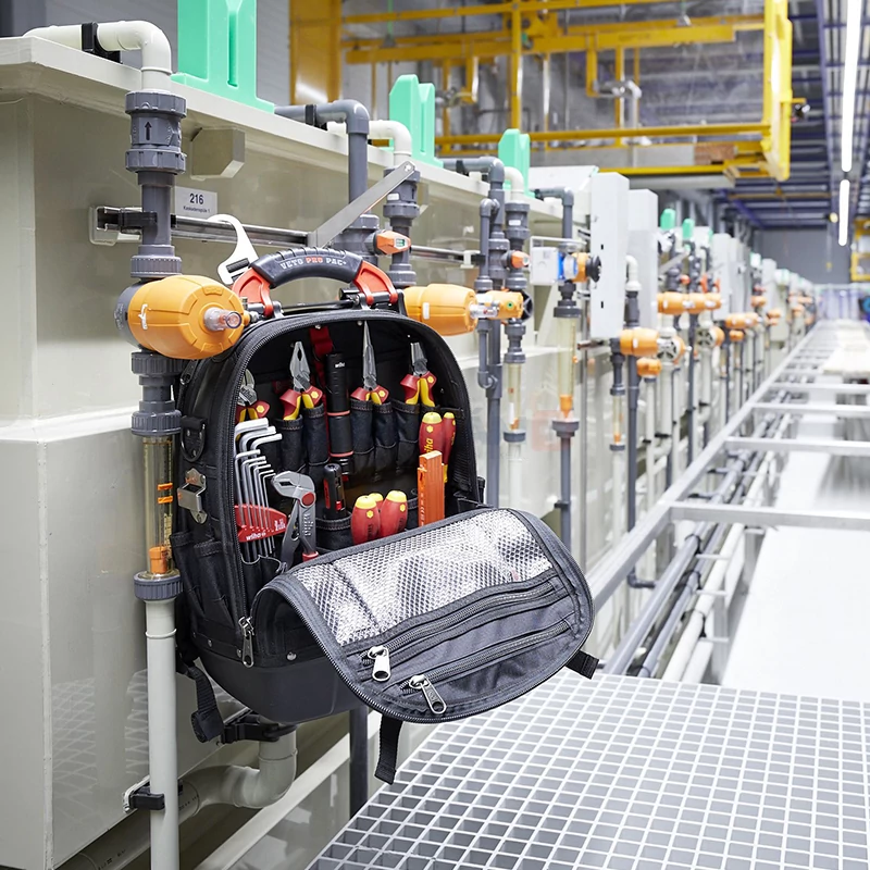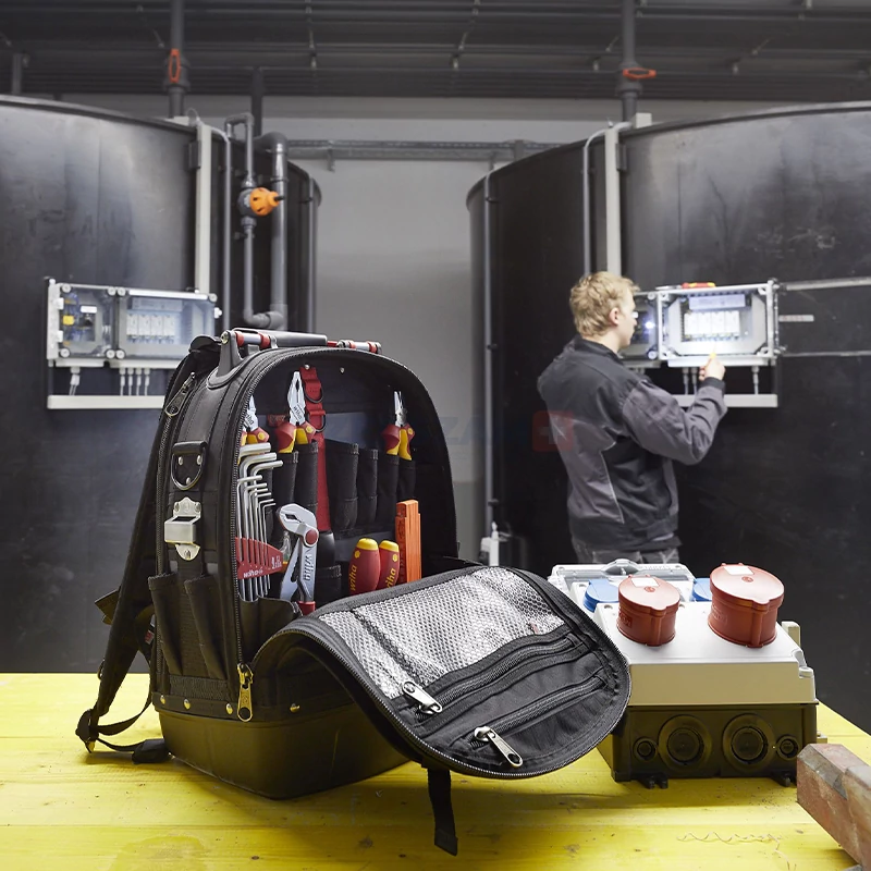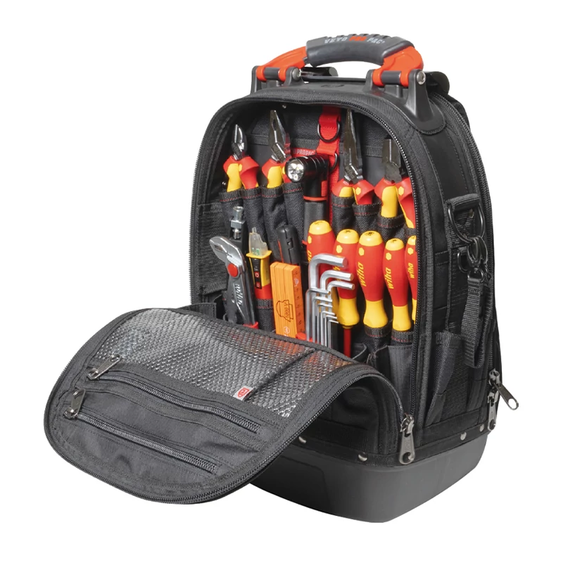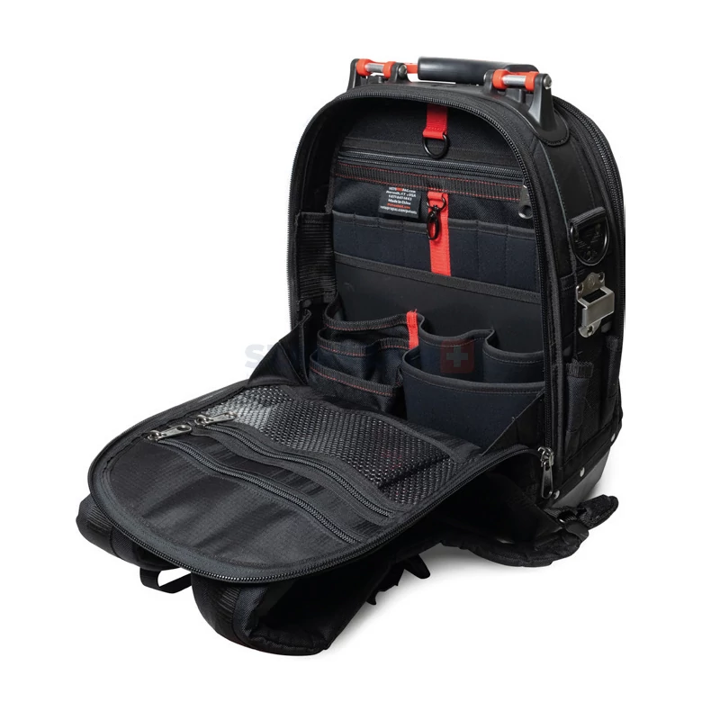 • Kiváló minőségű kéziszerszámokkal felszerelt robusztus és strapabíró hátizsák mobil használatra