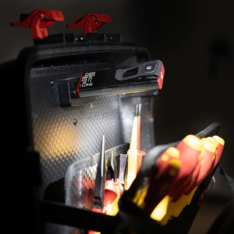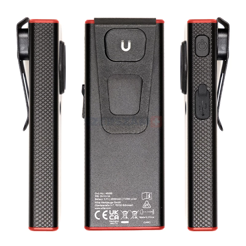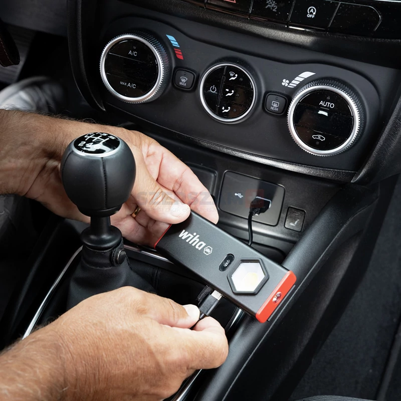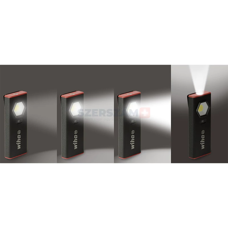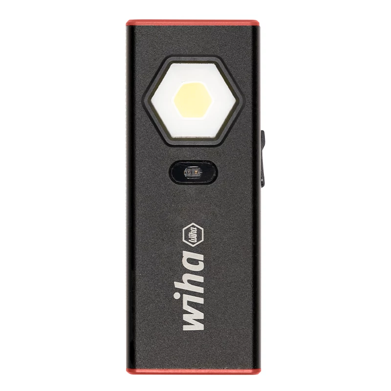 Nincs áram az építkezésen? Ez nem egy különleges helyzet, hanem mindennapi valóság a szakemberek számára. Itt jön képbe a Wiha akkumulátoros kézi lámpája, amely akár 1200 lm-es megbízható megvilágítást biztosít, és független a helyhez kötött áramforrásoktól. Az akkumulátoros kézi lámpa erőteljes COB LED-del rendelkezik, amely gombnyomással 80 lm (egyszeri megnyomásra), 600 lm (kétszeri megnyomásra) vagy 1200 lm (háromszori megnyomásra) fényerőre állítható, és erős frontmegvilágítást biztosít. A tetején egy SMD LED is található, melynek fényereje 100 lm (négyszeri megnyomás). A két lámpa kombinációja sokoldalú világítási lehetőségeket kínál a különböző munkaigényekhez. A fényerőszabályzó funkció maximális rugalmasságot és hatékonyságot biztosít, mellyel a fényforrás fényereje (hosszan megnyomva) folyamatosan a környezethez igazítható. Hatékonyság tekintetében a COB LED-hez tartozó érzékelő is kiváló megoldást nyújt, mivel a kézi lámpa ki- és bekapcsolását tudja szabályozni. Ha leteszik a lámpát, vagy letakarják az érzékelőt, akkor kikapcsol, majd felemeléskor automatikusan újra bekapcsol. Ez a legmagasabb szintű kényelmet és energiahatékonyságot kínálja a felhasználónak. Két erős mágnes a hátulján és az alján, valamint az övcsipesz számos rögzítési lehetőséget biztosít, és így szabaddá teszi a kezeit munka közben. A kompakt és nagy fényerejű kézi lámpa ütésálló (IK07) és fröccsenésálló (X3) a robusztus alumínium háznak köszönhetően. Az akár 10 órás világítási időtartam után a kézi lámpa újratölthető a mellékelt szabványos USB-C kábellel.