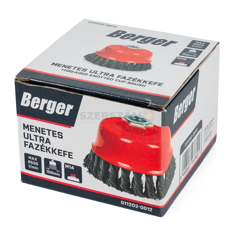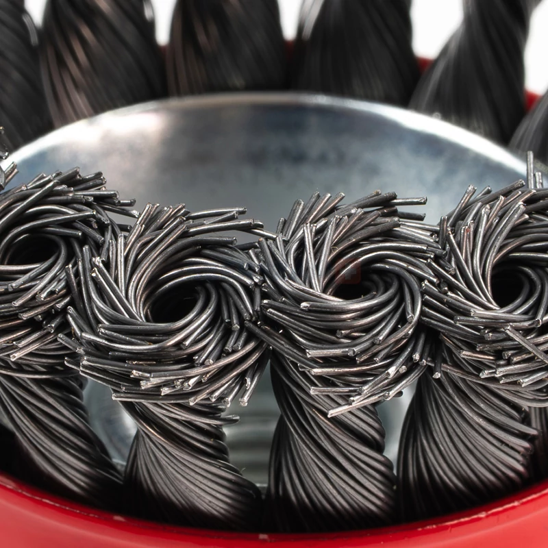 • Erős, sodrott, nemesacél szálú, menetes ultra fazékkefe sarokcsiszoló gépekhez